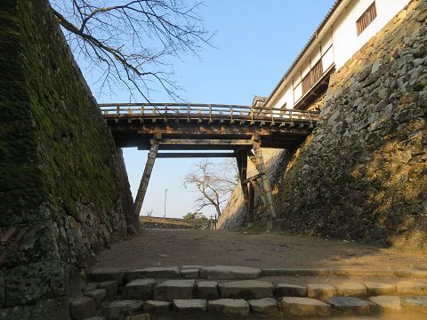 ↑ 廊下橋。戦時には落とす。
