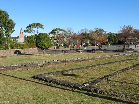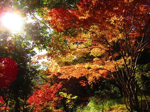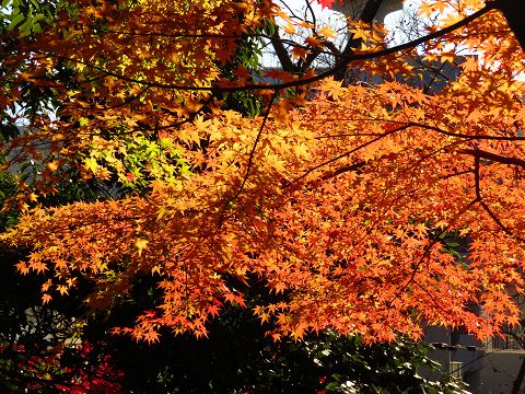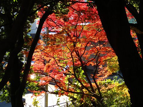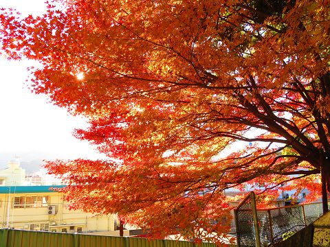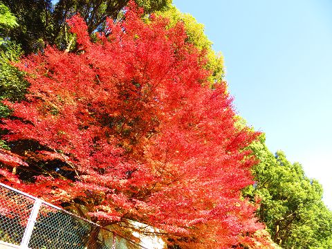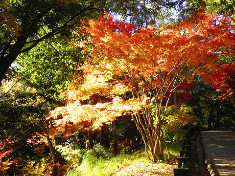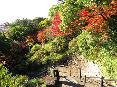 浦上天主堂に行こうとして公園の横を下ると、美しい紅葉が目に入りました。