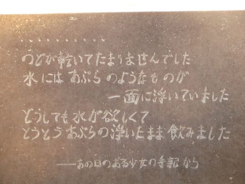 ↑ 平和の泉にある少女の手記の石碑。