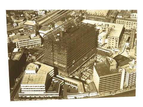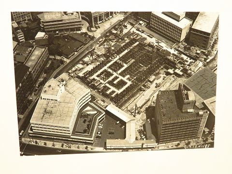霞が関ビル内には、建設中のビルの写真がパネルで掲示されており、当時の景色を見ることができます。