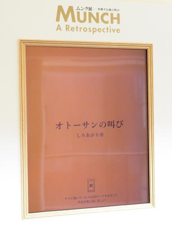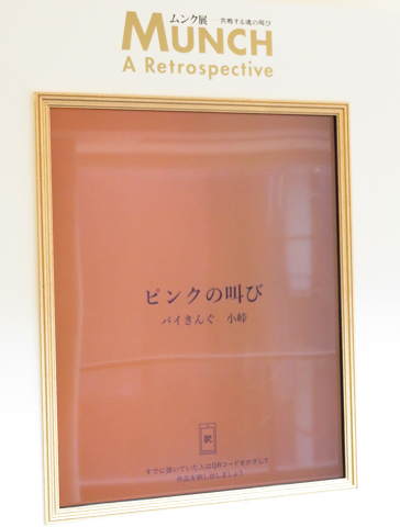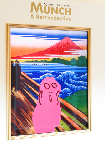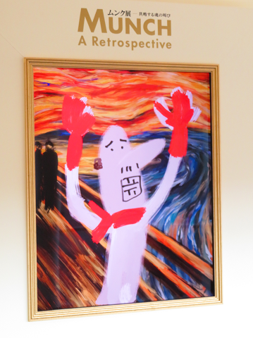 ムンクの代表作は「叫び」ですが、美術館内に「あなたの『叫び』を描こう」というコーナーがあり、しりあがり寿さんの「オトーサンの叫び」、バイきんぐ小峠さんの「ピンクの叫び」を見ることができました。