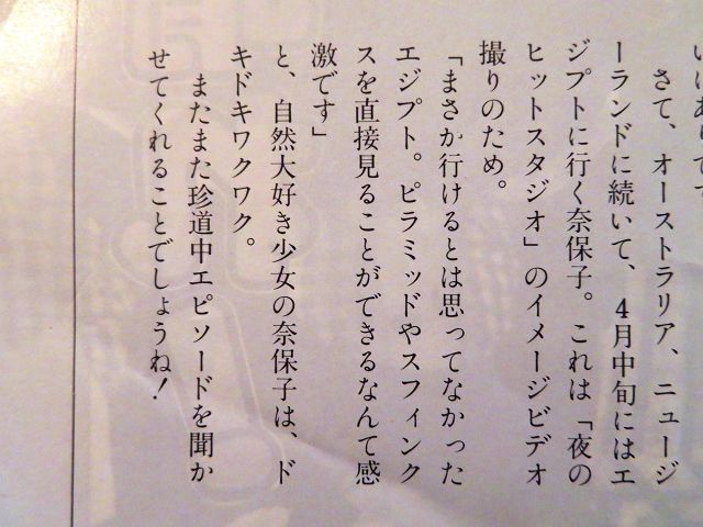 ↑ 奈保子しんぶんによると、当初はモルディブではなく、エジプトで撮影をする予定であった。