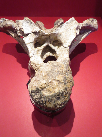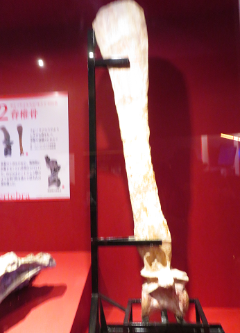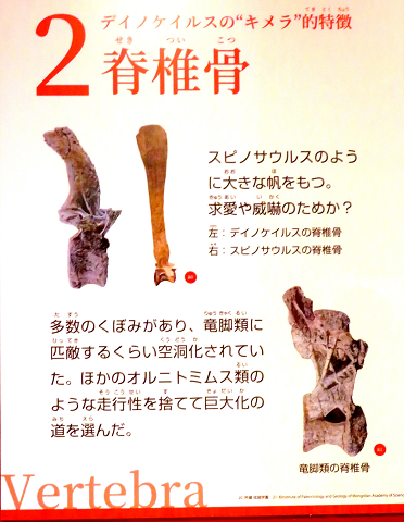 ↑ デイノケイルスの脊椎骨。多数の空洞があり、竜脚類に匹敵するくらい空洞化されていた。