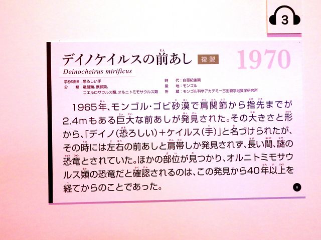 2019年7月15日、東京上野の恐竜博2019で「恐ろしい手」というデイノケイルスを見ました。