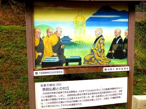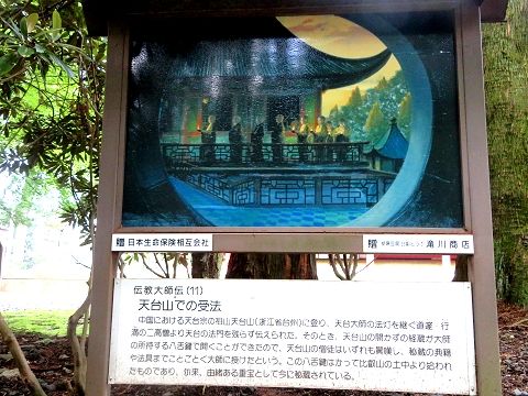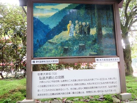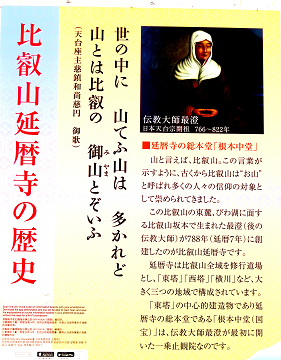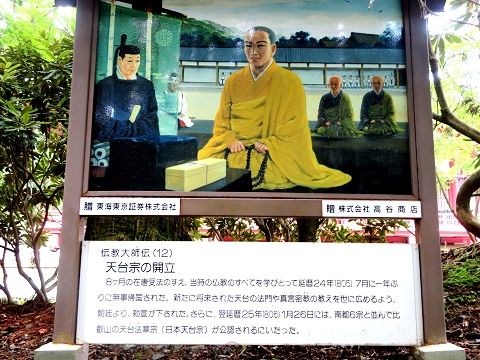 ↑ (12)8カ月の在唐受法の末、当時の仏教のすべてを学び取り、805年7月に一年ぶりに無事帰国された。新たな天台の法門や真言密教の教えを世に広めるように朝廷より勅宣が下された。翌806年には南都6宗と並び、比叡山の天台法華宗(日本天台宗)が公認された。