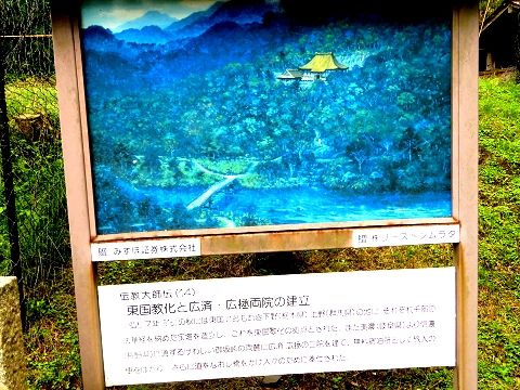 ↑ (14)816年には東国に赴き、下野(栃木県)、上野(群馬県)の地で法華経を納めた宝塔を建立し、東国強化の拠点とした。また美濃(岐阜県)より信濃(長野県)に通ずる険しい御坂峠の両麓に2院を建てて、無料宿泊所にした。