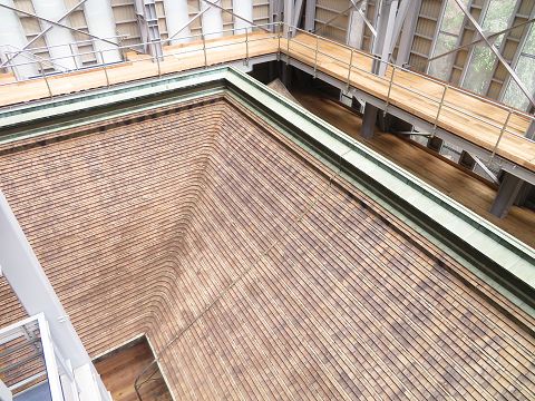 ↑ 根本中堂。 最澄が788年に創建したお堂で、国宝に指定されている。2016年より約10年に及ぶ大改修が行われており、一部改修の様子を見ることができる。