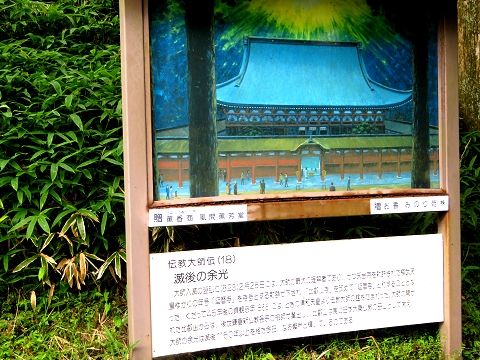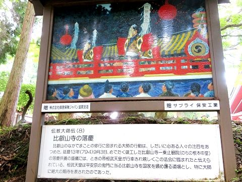 ↑(8)794年に竣工した比叡山寺一乗止観院(のちの根本中堂)の落慶供養の盛儀には、ときの帝である桓武天皇が行幸され、この法会に臨まれたと伝えられている。桓武天皇は平安京の鬼門に当たる比叡山寺を、国家を鎮め護る道場として期待された。