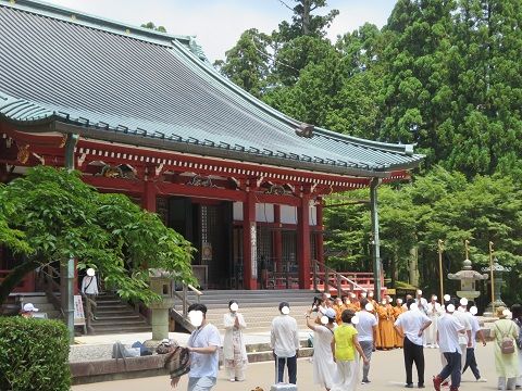 ↑ 延暦寺の阿弥陀堂で記念撮影。