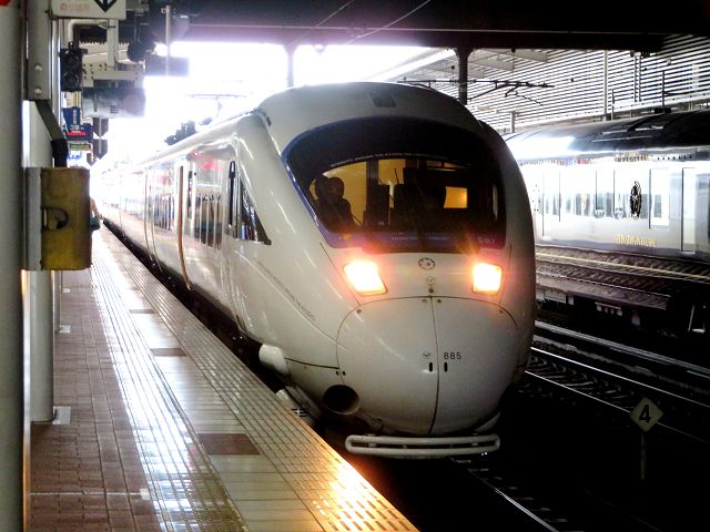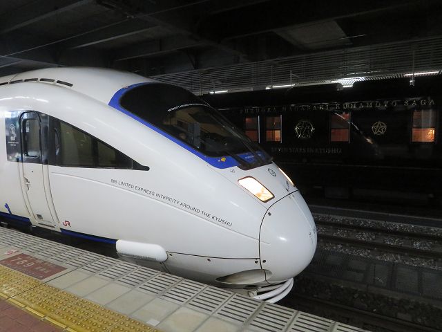 ↑ 「ななつ星」の隣に特急「かもめ」が到着。