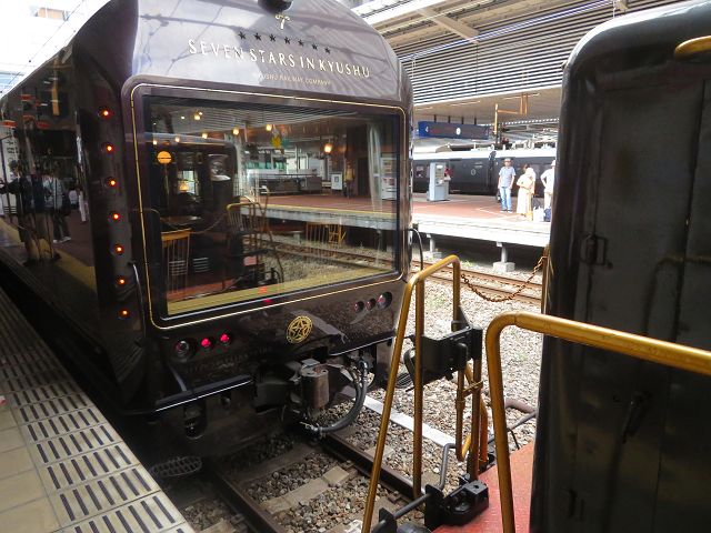 2019年7月27日、博多駅にてJR九州のクルーズトレイン「ななつ星 in 九州」を見ました。2013年10月から運行している豪華列車です。以前、由布院で「ななつ星」を見た事があり、これで2回目です。