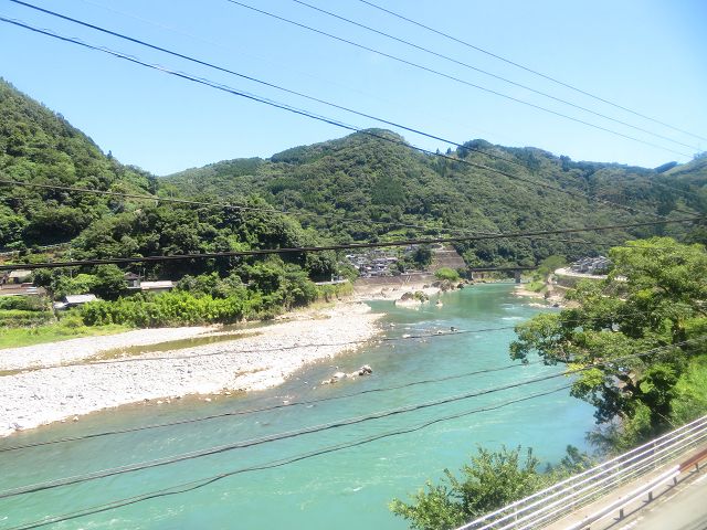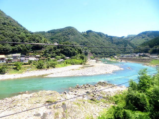 ↑ 白石駅から一勝地駅まで、球磨川を見ながら進んでいく。