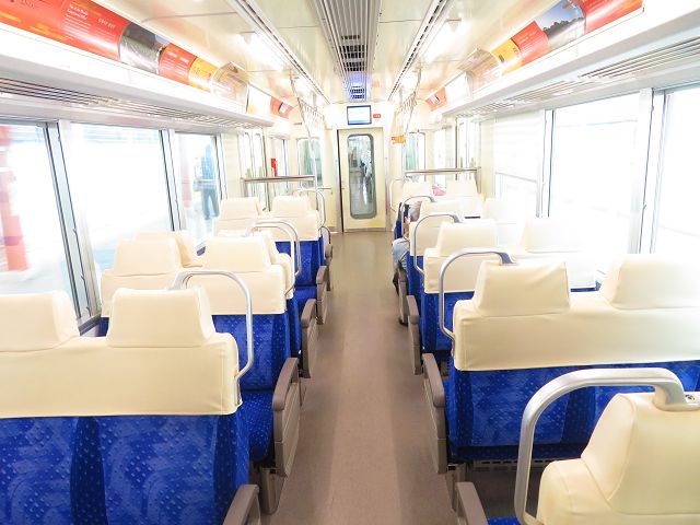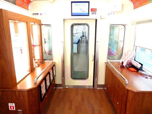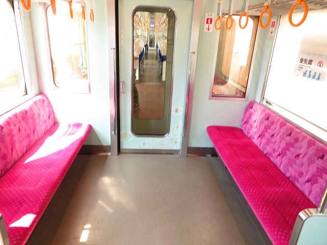 2019年8月4日に撮影した、西鉄の太宰府観光列車「旅人」の内装です。
