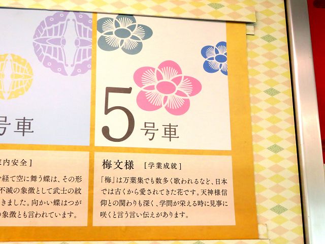 ↑【5号車】 「梅文様(うめもんよう)」【学業成就】。