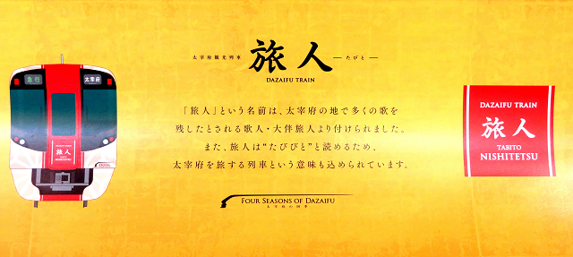 また、旅人は「たびびと」と読めるため、大宰府を旅する列車という意味も込められています。