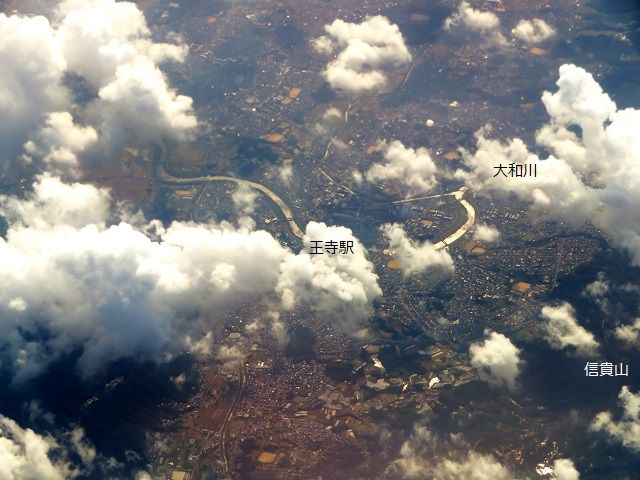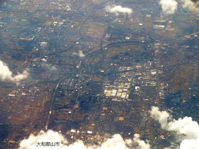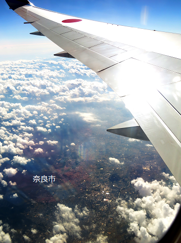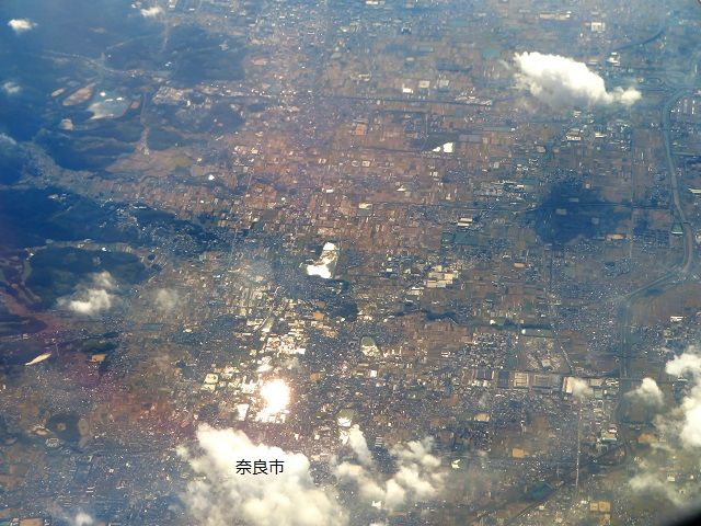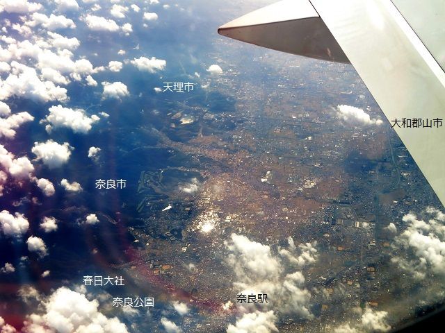 ↑ 奈良市上空。JR奈良駅は雲に隠れている。