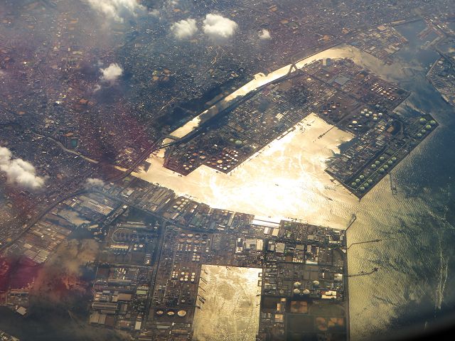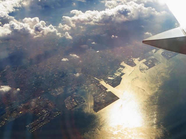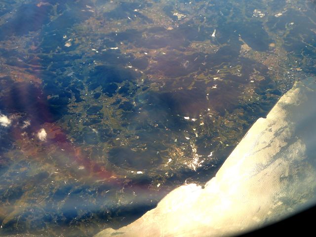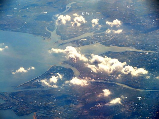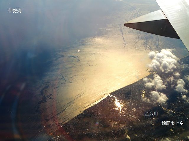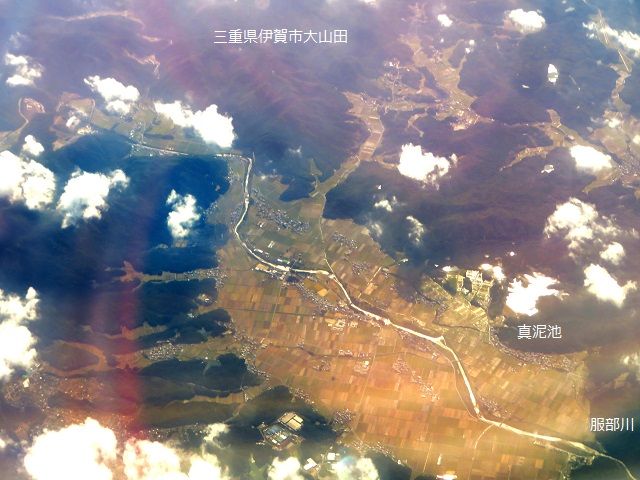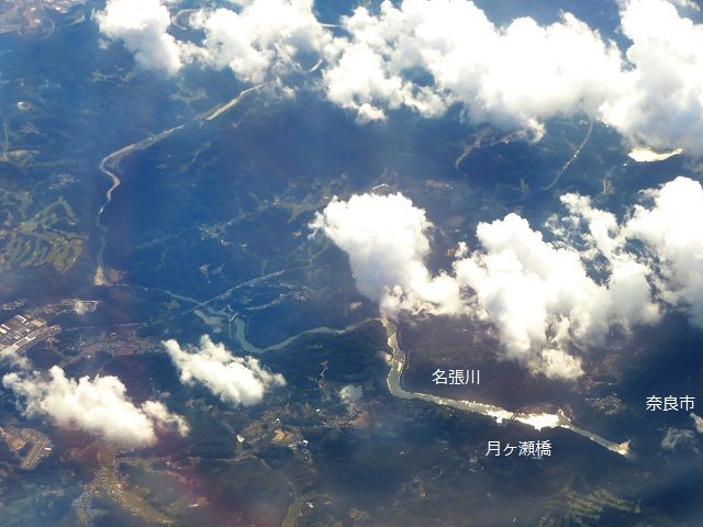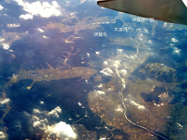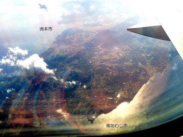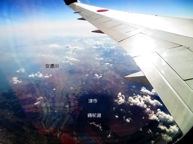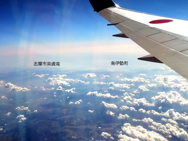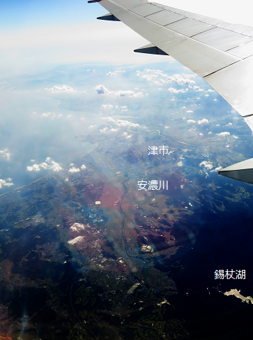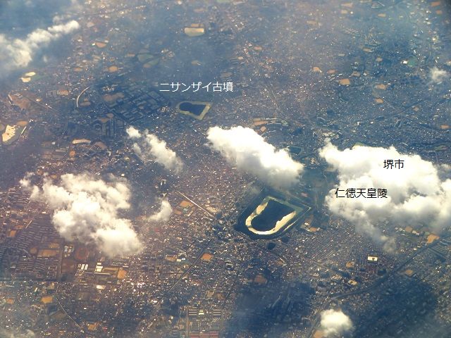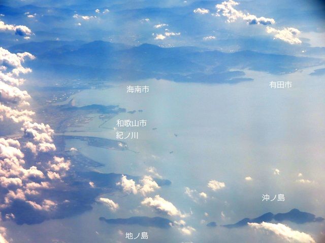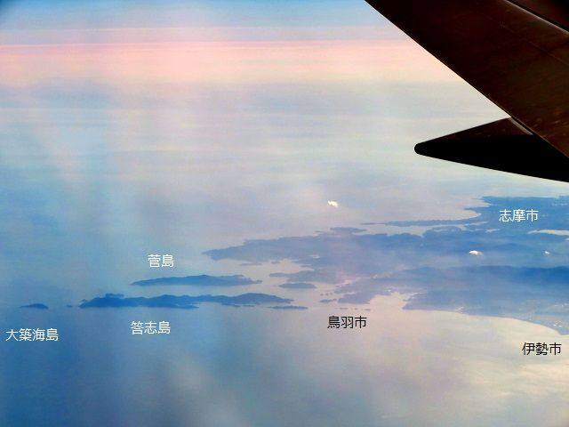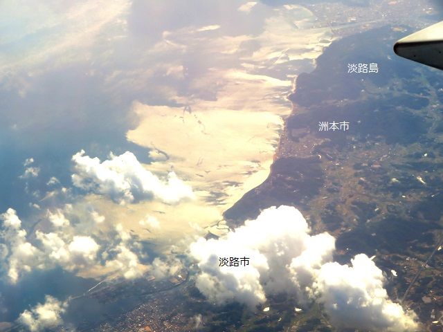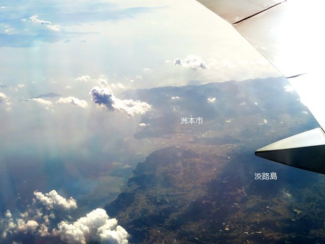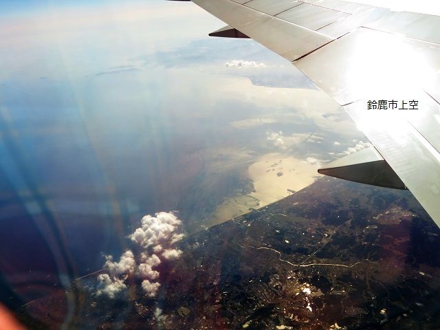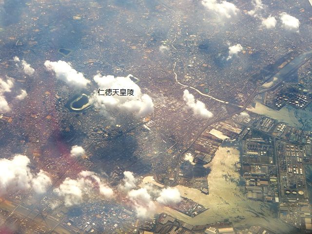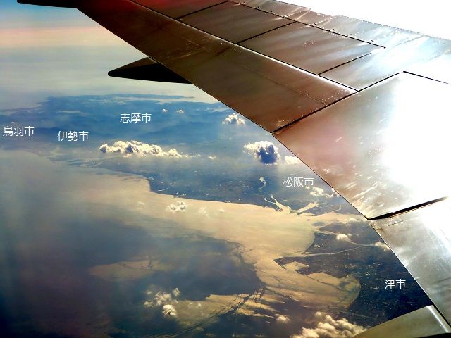 2019年10月30日、紀伊半島の鈴鹿、上野、奈良、仁徳天皇陵、堺市、関西国際空港、淡路島の機窓写真です。