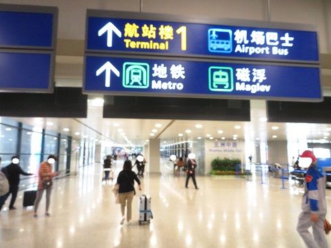 ↑ 上海浦東国際空港。「磁浮:マグレブ」上海リニアモーターカー表示。