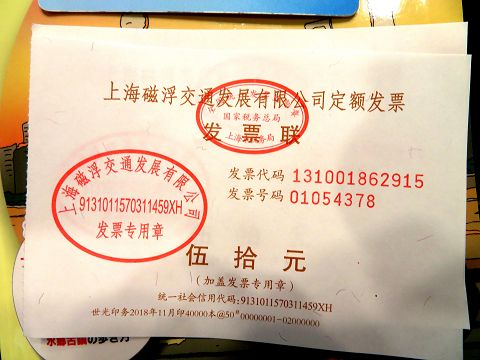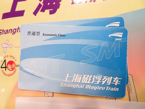 ↑ 上海磁浮列車 SMT(Shanghai Maglev Train) 乗車券。