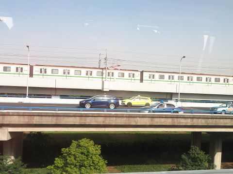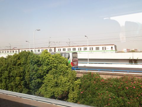↑ 軌道交通(地下鉄)2号線の車両とバスが見える。