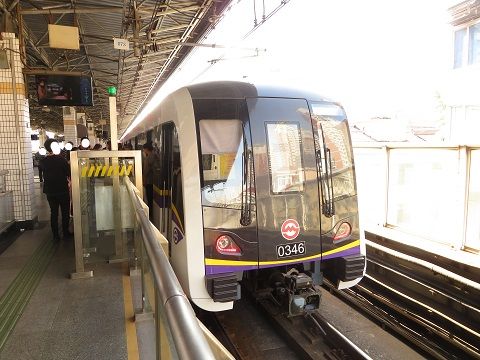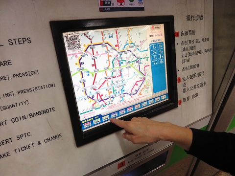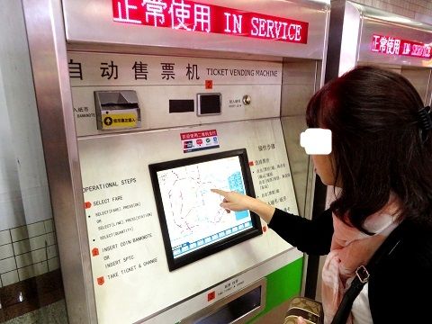 ↑ 中山公園駅から宝山駅までのチケットを購入する妻。