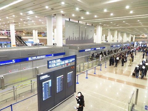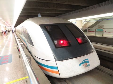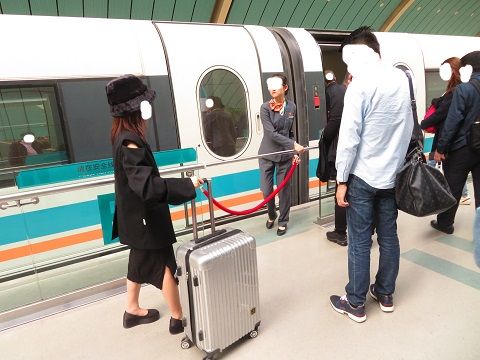 龍陽駅から上海リニア(マグレブ)で浦東国際空港に移動し、福岡空港から来る私の両親、妻の母親を待ちました。