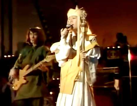 ミッキー吉野さんは中華っぽい服を着て歌いたいとの希望があり、ゴダイゴが赤い服を着て歌った事があります。