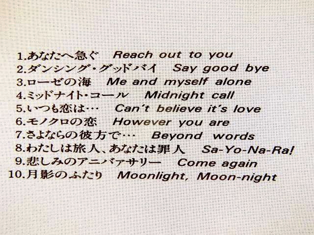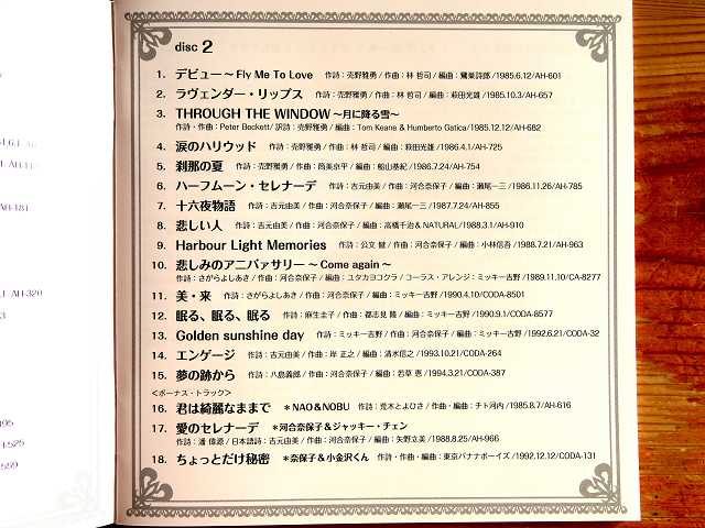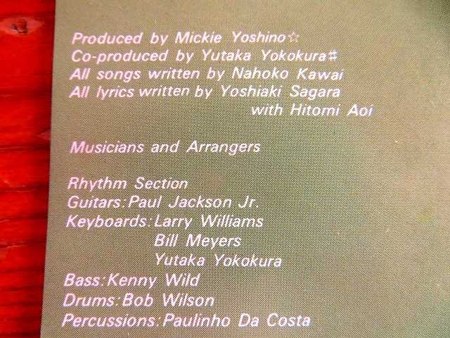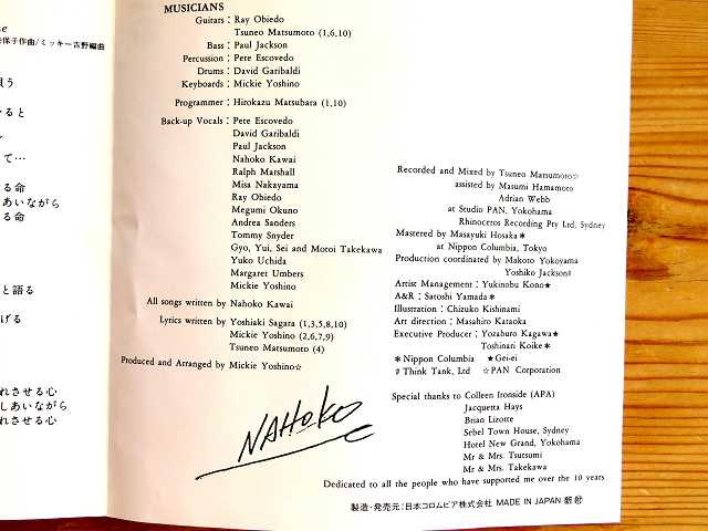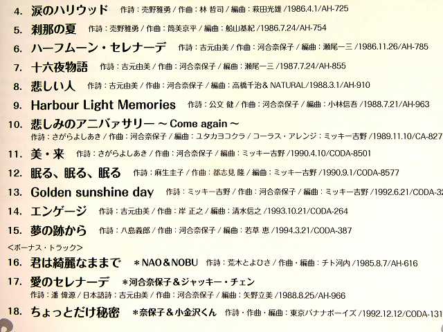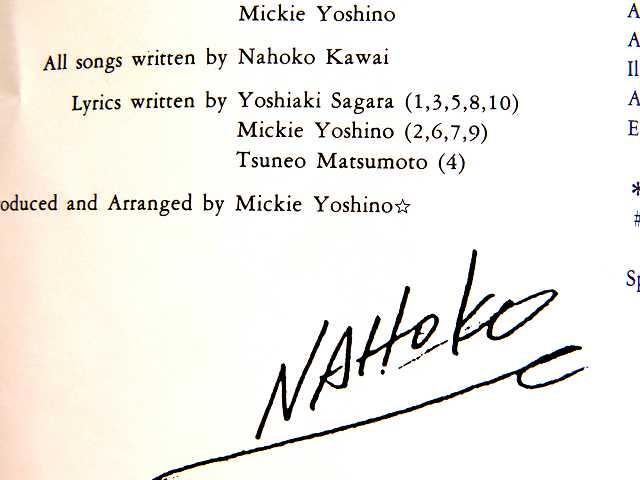 ↑ 河合奈保子さんは芸名の「NAOKO:なおこ」ではなく、本名の「NAHOKO:なほこ」でサインしている。 全曲:河合奈保子さん作曲。