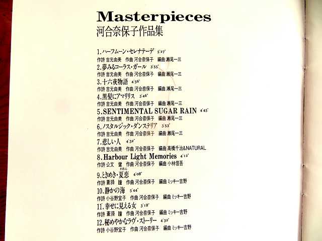 7)Masterpieces :マスターピーシーズ:河合奈保子作品集。 全曲:河合奈保子さん作曲。