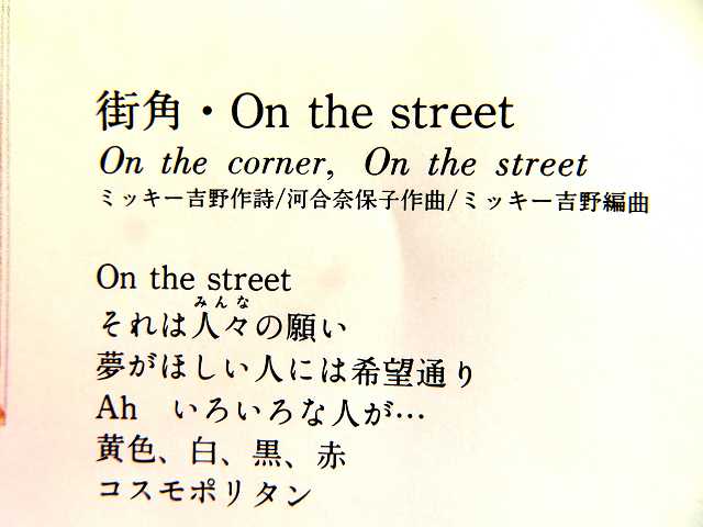 ↑ 10曲の内、(2)「風に吹かれて」、(9)街角・On the street は、ミッキー吉野さんが作詞もしている。