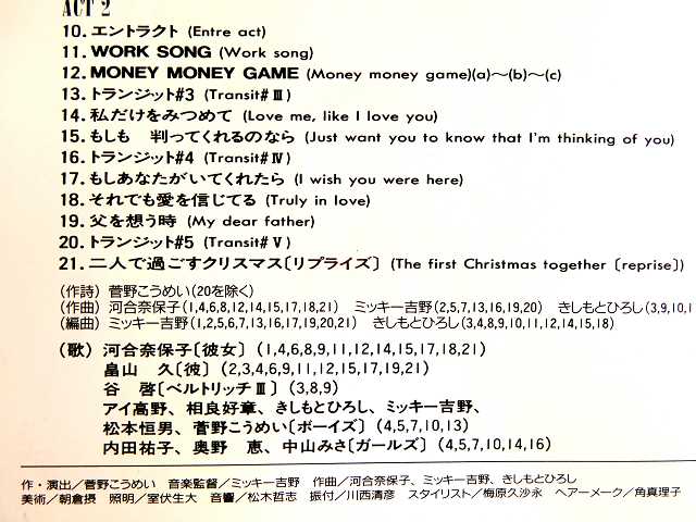 ↑ ミッキー吉野さんの編曲は、(10)悲しみのアニバァサリー、(11)美・来、(12)眠る、眠る、眠る、(13)Golden sunshine day