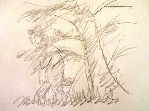 私の記憶の中のヒバゴンを紙に描いたのが下の絵。