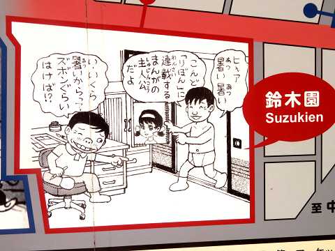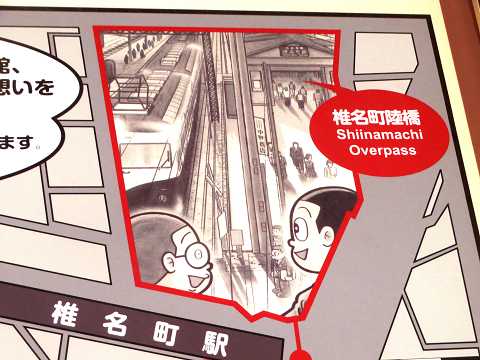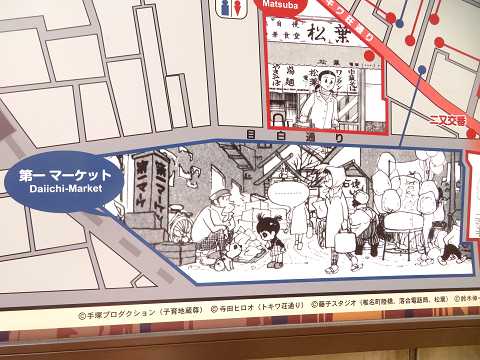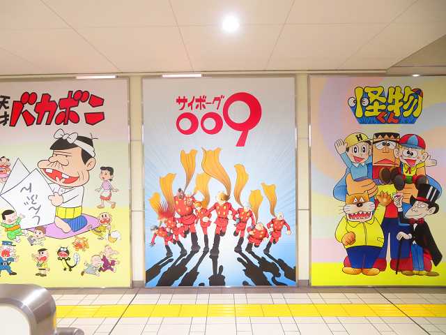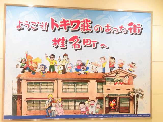 西武池袋線の椎名町駅・南口に行くと、漫画家によるイラストが描かれた案内板と壁画を見ました。