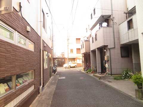 日本加除出版株式会社別館を曲がると、路地の奥に日本加除出版株式会社本館がある。