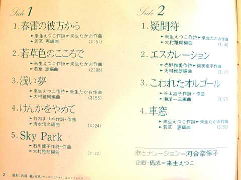 来生さんが歌われる声と同じくらい、奈保子さんが歌われる声が素晴らしく、聴き惚れてしまいます。
