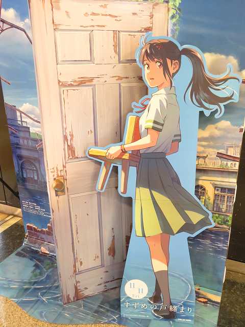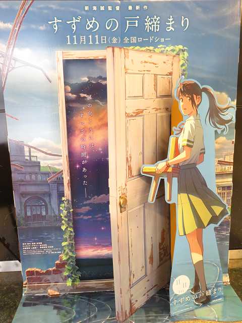 ↓ 新神戸駅での「すずめの戸締まり」紹介コーナー。