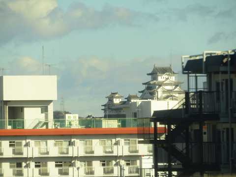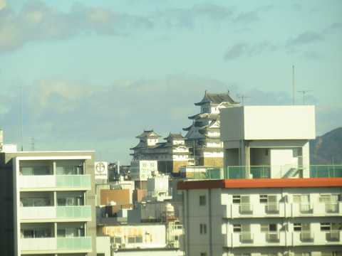 東海道本線ならよく見えるが、東海道新幹線の車窓からだと、安土山が少し見える程度。