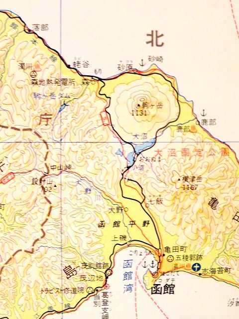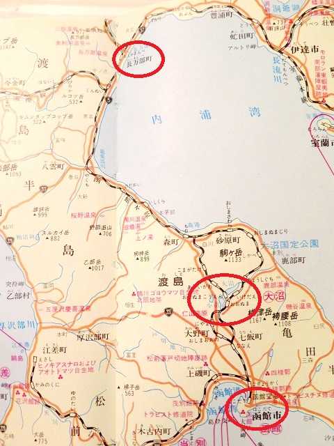 ・函館の公園で野宿をして、朝5時頃に目が覚めた。新聞を買って読んで出発した。外人墓地などを回り、国道5号線を北上して大沼国定公園へ向かった。