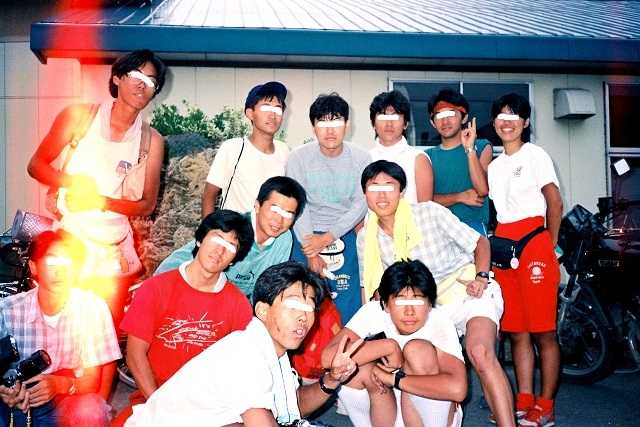 駅前に集まった自転車仲間で記念撮影。 中央で麦わら帽子を被っているのが私。