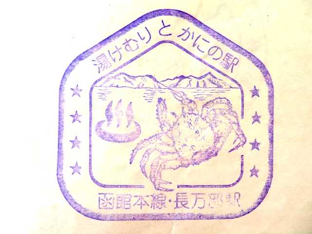 ↓ 函館本線の山越駅(八雲町)で記念スタンプを押した。