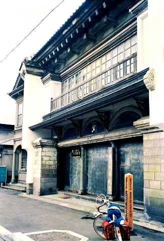 明治34年(1901年)、米穀商初代太刀川善吉が建築した土蔵造り2階建店舗。
