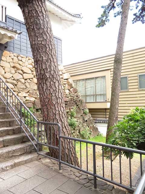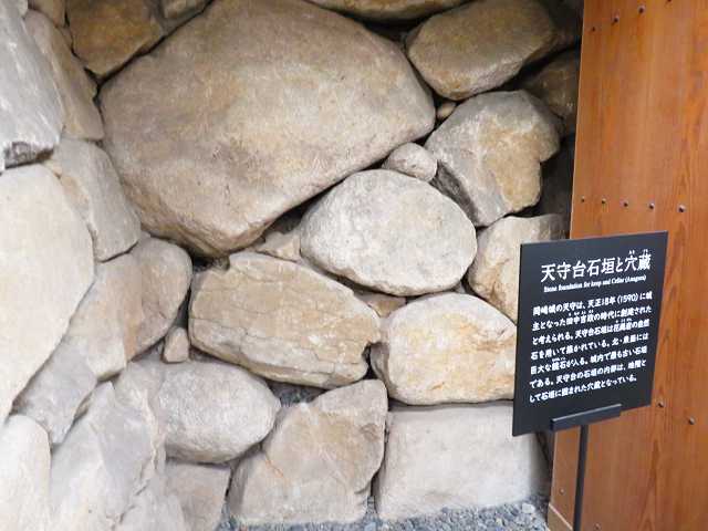 天守閣石垣は花崗岩の自然石を用いて築かれている。北・東面には巨大な鏡石が入る。場内で最も古い石垣である。天守台の石垣の内部は、地階として石垣に囲まれた穴蔵となっている。
