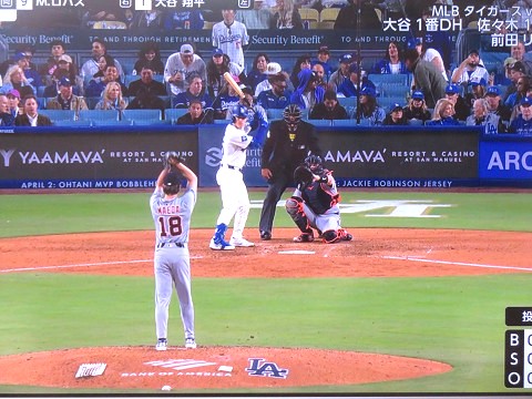 3月30日(日)もドジャース対タイガースですが、先発は佐々木朗希投手でした。四球が多くなり、2回で交代となります。タイガースは3番手ピッチャーとして前田健太投手が投げていました。