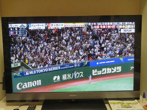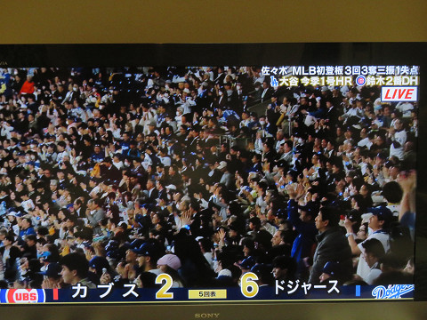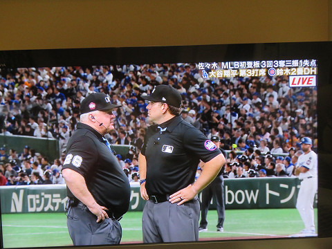翌日3月19日(水)、東京ドームのドジャース対カブスでは、大谷選手が第1号ホームランを打ちました。素晴らしい角度で球が飛んで行ったのに、スタンドギリギリでボールが落ち、ファンがボールをキャッチしようと手を伸ばしたため、審判のリプレイ映像判定となりました。結局、今期第1号ホームランが認められましたが、どうも打球が東京ドームの天井に当たって、角度が変わったそうです。