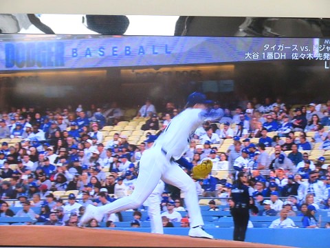 3月29日(土)は、ドジャース対タイガースです。山本由伸投手が先発でした。5回二失点10奪三振で交代しました。