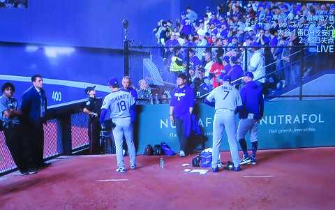 2025年10月2日(米国1日)、大リーグのワールドシリーズ・ドジャーズ対ブルージェイズ第7戦がカナダのトロントでありました。試合は8回表を終わり4対3でブルージェイズがリードしており、ブルペンではスネル投手と山本由伸投手が準備していました。8回裏の途中から、シーハン投手からスネル投手に交代しました。9回表、先頭打者のキケ・ヘルナンデス選手がアウトになりました。ブルージェイズはあと2人抑えると優勝が見えてきた時、ドジャースのロハス選手がホフマン投手から値千金のホームランをレフトスタンドに打ち込み、奇跡のように4対4の同点になりました。9回裏ですが、スネル投手がゲレーロJr選手を打ち取って1アウトを取った後、ビシェット、バージャー両選手にヒットを打たれ、山本由伸投手と交代します。山本投手はカーク選手に死球を投げて、いきなりワンアウト満塁のピンチになります。ここで1点入るとブルージェイズの優勝が決まります。山本投手がバーショ選手に投げた球はセカンドゴロになり、キャッチャーが本塁でアウトにします。そしてクレメント選手の打球はセンターのフェンス前に飛び、パヘス選手がキケ・ヘルナンデス選手と交錯しながらもキャッチして3アウトとなり、9回を0点に抑えました。試合は延長10回に入りました。ーーーーーーーーーー↓ ブルペンでスネル投手と山本由伸投手が練習をしていた。↓ シーアン投手が打たれた。↓ シーアン投手がマウンドを下りる。↓ スネル投手に交代。↓ グランドのプレート付近が窪んでいると主張したスネル投手。↓ 砂が運ばれてきた。↓ プレートそばに土を入れる。↓ 土を押していく。↓ 土を平らにした。↓ シュナイダー選手を抑える。↓ 8回を終わって、4対3でブルージェイズが1点リード。↓ ブルージェイズが1992年、1993年にワールドシリーズチャンピオンになった。ーーーーーーーーーー↓ 9回表、ドジャースの攻撃。キケ・ヘルナンデス。↓ 大谷選手。↓ キケ・ヘルナンデスはアウト。↓ 9回表1アウトで、ロハス選手がバッターボックスに入った。↓ 試合を見守るフリーマン選手。↓ ホフマン投手。↓ ロハス選手対ホフマン投手。↓ 体を崩しながら、ロハス選手が打った。↓ ボールはライト席に入り、ホームラン!↓ 喜ぶ大谷選手。↓ 複雑な表情のホフマン投手。↓ ロハス選手のソロホームランで、4対4の同点になる。ーーーーーーーーーーーー↓ 9回裏、ブルージェイズの攻撃。スネル投手が投げる。↓ ゲレーロ選手。↓ 外野フライでワンアウト。↓ 次はビシェット選手。↓ ヒットで出塁。↓ 山本投手が呼ばれた。↓ スネル投手から山本投手に交代した。↓ ワンアウト1,2塁。↓ カーク選手。↓ ボールがカーク選手に当たり、デッドボールとなる。↓ 山本投手をにらむカーク選手。↓ スミス捕手と話す山本投手。↓ ワンアウト満塁。↓ バーショ選手。↓ バーショはセカンドゴロで、ボールはホームへ。↓ 3塁選手が帰る前にキャッチャーが捕球してアウト。↓ 吠える大谷選手。↓ 2アウト満塁でクレメント選手。↓ クレメント選手の打球はセンターへ。↓ センターでパヘス選手とキケ・ヘルナンデス選手が交錯した。ボールはパヘス選手が取った。↓ 自分のグラブにボールがなかったので、ボールを取り損ねて試合に負けたと勘違いし、立ち上がれなかったキケ・ヘルナンデス選手。↓ 喜ぶ山本投手。4対4で10回に突入することになった。↓ 元気に復活したキケ・ヘルナンデス選手。↓ 大谷選手。ーーーーーーーーーー↓ パヘス選手とキケ・ヘルナンデス選手の交錯映像。↓ 山本投手。↓ 大谷選手。↓ 大谷選手とスミス捕手。