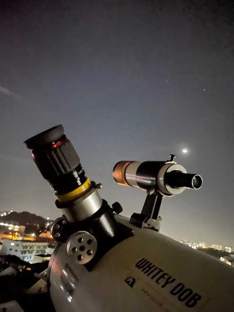 レモン彗星(C/2025 A6)が夕方と明け方の両方で見える位置にあるということで、2025年10月17日夕方、会社を早退してマンションの共有通路に20センチドブソニアン反射望遠鏡を設置して、西の空にあるレモン彗星を探しました。ところが共同通路の蛍光灯の光がアイピースに入り、画面が白くなって彗星が分かりませんでした。仕方がないので、翌日2025年10月18日3時に起きて、マンションベランダに望遠鏡を設置して、4時頃から北東の空を捜索し始めました。4時14分頃、白くボワッとした暗い彗星が視野に入ってきました。レモン彗星でした。尾はなんとなくあるように見えました。手持ちのカメラPower Shot SX720 HS を国際光器20センチドブソニアン反射望遠鏡の接眼レンズに近づけて、コリメート接写によりレモン彗星を撮影しました。光害のひどい街なので、見えたら儲けものですが、それでもとても暗い彗星だったという感じでした。見ていると、すぐに雲が流れてきて彗星を隠してしまいました。ーーーーーーーーーーーーーーーー2025年10月18日4時頃から、北東の空でレモン彗星を探す。↓ レモン彗星(C/2025 A6)の位置(明け方)2025年10月 星に対する彗星の位置。(アストロアーツ)↓ レモン彗星 (2025年10月18日 4時14分)画面上は、人工衛星が写り込んでいた。↓ レモン彗星 (2025年10月18日 4時14分)↓ レモン彗星 (2025年10月18日 4時14分)