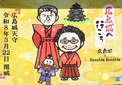 2025年10月13日、久しぶりに広島城を見学しました。ポスターには次の紹介がありました。「広島城へいこう 広島城xOoochie Koochie広島城天守令和8年(2026年)3月22日閉城」広島城、奥田民生さん、吉川晃司さん、毛利輝元の絵が描かれています。2026年3月に天守が閉城する広島城ですが、場内の展示品は、現在建設中の「広島城三の丸歴史館」で展示されます。広島城天守が再建されるのは16年後なので、私は生きているか分かりません。広島城のお堀から、広島城まで歩いた様子の写真を紹介します。ーーーーーーーーーーーー広島城へいこう 広島城xOoochie Koochie広島城天守令和8年(2026年)3月22日閉城↓ 広島城。↓ 広島城三の丸歴史館新築工事。↓ 広島城二の丸。↓ 被爆樹木ユーカリ。爆心地から740m。ここで被爆しました。被爆して生き残っているユーカリはこの木だけです。↓ 被爆したユーカリの木。↓ (東側)広島総合庁舎。↓(西側)エディオンピースウィング広島。↓ 中御門跡。1945年の原子爆弾の投下により、中御門は焼失しました。門とともに櫓台の石も焼け、赤く変色しひび割れています。↓ 廣島護國神社。↓ 広島城。