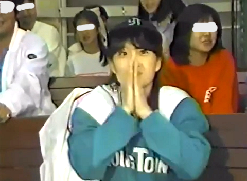 1987年5月、大阪球場でヤンタンオールスターズvsとんねるずの試合が行われました。ゲームは7回制で、7回の表を終わって6対3でとんねるずチームがリードしています。7回裏の先頭バッターは河合奈保子さんでした。奈保子さんの背番号は「75」で、ナオコから75になったと思います。嘉門達夫さんが奈保子さんをバッターボックスまで引っ張ってきます。ピッチャーの石橋さんは奈保子さんにゆるい球を投げますが、空振りでワンストライクです。石橋さんがかなり前から2球目をゆっくり投げると、奈保子さんのバットに当たり、ボールはショート方向に転がります。奈保子さんのボールが近づくと、なぜか選手たちは転げてしまい、ボールを取ることができません。奈保子さんは”強襲”の内野安打で一塁に進みました。ーーーーーーーーーーーーーー↓ 7回裏、河合奈保子さんの手を嘉門達夫さんが引っ張っていく。↓ 河合奈保子さんの背番号「75」。「なおこ」をもじっていると思う。↓ 奈保子さんに礼をする石橋投手。↓ ゆっくりの球を下から投げた。↓ 空振りをする奈保子さん。↓ かなり奈保子さんに近づいてからボールを投げる石橋投手。↓ 奈保子さんがボールを打った。↓ ボールはショート方向に転がった。↓ なぜか球を取ろうとする選手たちがこけた。↓ こけた選手たちの間をボールが転がる。↓ その後もみんな転げてしまう。↓ 奈保子さんは無事に内野安打で一塁に進んだ。
