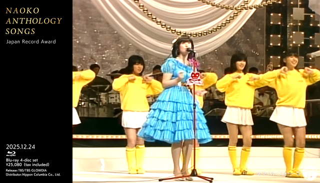 2025年9月30日、タワーレコードからオススメ情報メールが来ました。「河合奈保子、テレビでの歌唱シーン満載のBlu-ray BOXが(2025年)12月24日発売!」とあります。当然ながら、私は購入する予定です。世界で一番素敵な奈保子さんの笑顔を見て、美しい歌声を聴いて、余生を楽しく過ごしたい気持ちでいっぱいです。詳細は次の通りです。河合奈保子、テレビでの歌唱シーン満載のBlu-ray BOXが(2025年)12月24日発売!新人賞に輝いた「日本レコード大賞(1980年)の”ヤング・ボーイ”から、「日本作曲大賞」(1987年)での自身が作曲した”十六夜物語”歌唱まで、すべて初商品化の秘蔵映像・全271分を収録。放送以来、あまり目にすることが出来なかった名シーンの数々は、河合奈保子ファンだけでなく、同時代を生きたすべての人にとって懐かしい記憶を呼び戻すものばかり。特に1982年11月24日OAの「速報!日本レコード大賞」での「けんかをやめて」の金賞受賞や、1984年12月31日OAの「第26回輝く日本レコード大賞」での「唇のプライバシー」の金賞受賞歌唱も見どころとなっている。またDISC4に収録された「ヒット歌謡大全集」(1984年8月31日OA)では「けんかをやめて」をピアノの弾き語りを行っている。映像はデジタルレストアを行い、音も新たにマスタリング(48kHz 24bit)をしたハイクオリティな音質となっている。制作著作:TBS発売元:TBS/TBSグロウディア発売元:日本コロムビア株式会社☆封入特典:特製カラーブックレット(24ページ)、収録リスト&番組歌唱写真で構成。収録内容【DISC1】in ザ・ベストテン1【DISC2】in ザ・ベストテン2+【DISC3】in たのきん全力投球!【DISC4】awarded 日本レコード大賞ーーーーーーーーーーー↓ 奈保子アンソロジーソングス 2025年12月24日発売予定。日本コロムビア公式You tube紹介チャンネル画面より。河合奈保子さん「スマイル・フォー・ミー」ーーーーーーーーーーーーー↓ 日本コロムビア 公式HP。河合奈保子アンソロジーソングス紹介。ーーーーーーーーーーーーー↓ 2025年9月30日 タワーレコードからの案内メール。